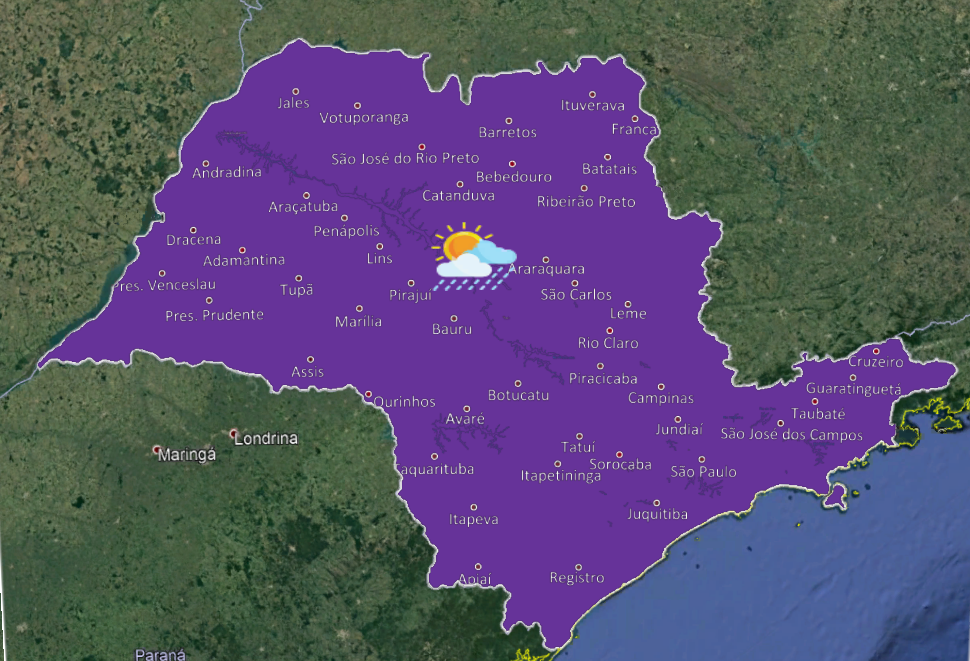 Chuvas isolada no estado de São Paulo